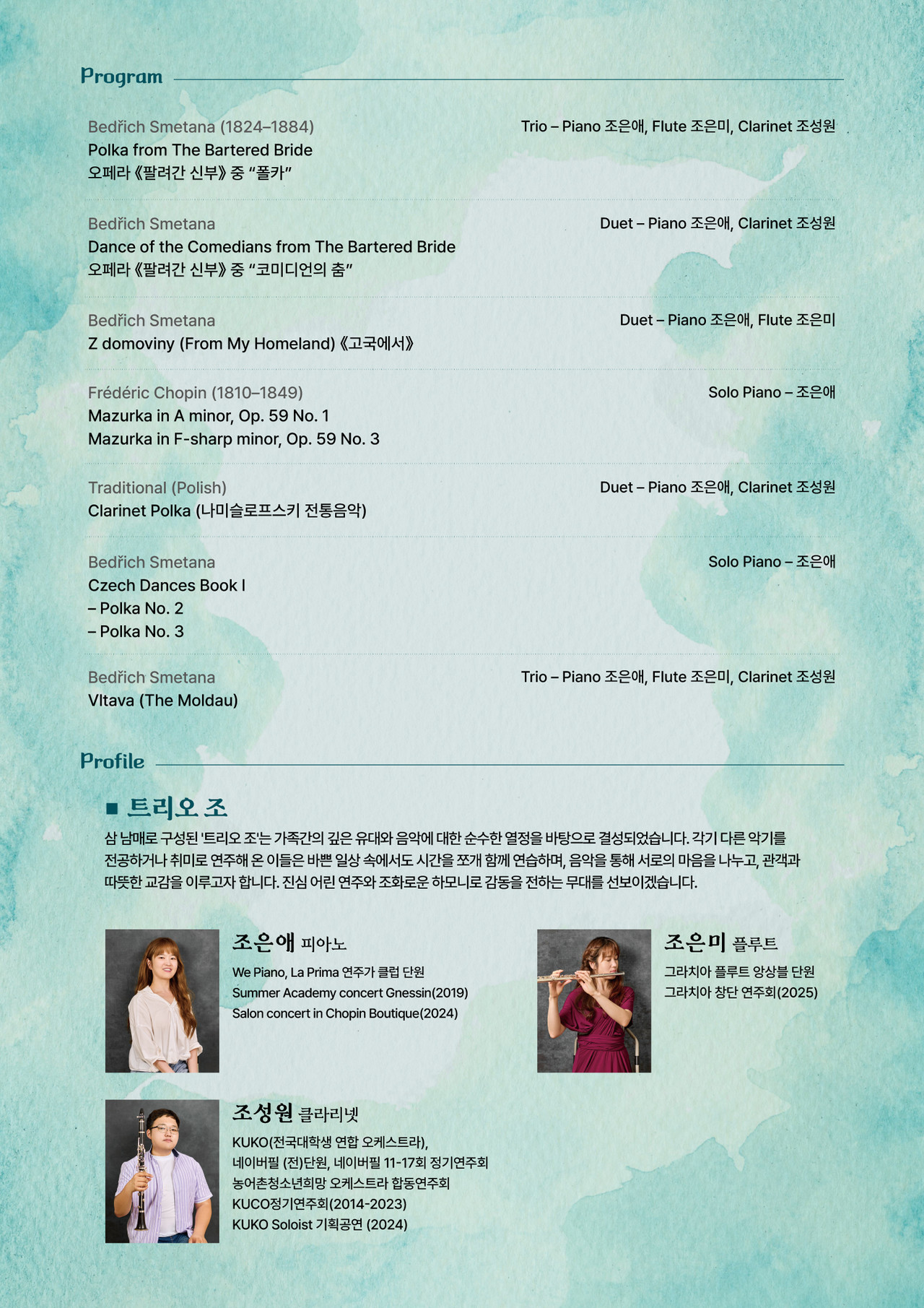 공연명 트리오조 : 스메타나 그리움의 선율공연기간 2025.08.21.(목) 19시 30분